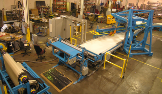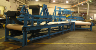 The standard conveyor is 30′ long but can be extended to provide room for supplemental operations. The control system is furnished with the latest Allen Bradley PLC. Available with let-offs and wind-ups, this accurate, versatile machine can be tailored to meet your exact bias cutting needs.