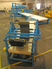 The Spadone Low Angle Bias Cutter is designed to cut ply stock, including steel cord, at angles of 12° to 90° from full width rolls of fabric. The width of ply is controlled by an encoder riding directly on the fabric and the cutter conveyor is powered by an A.C. Servo drive. The fabric is clamped to the belt during the cutting operation.